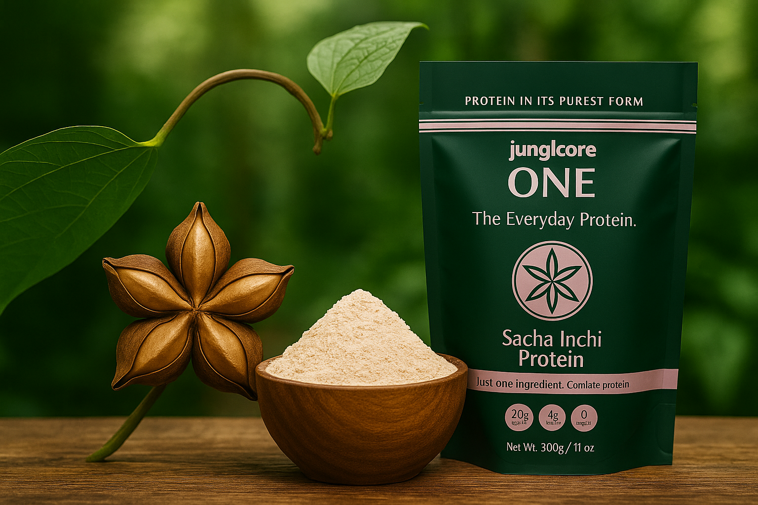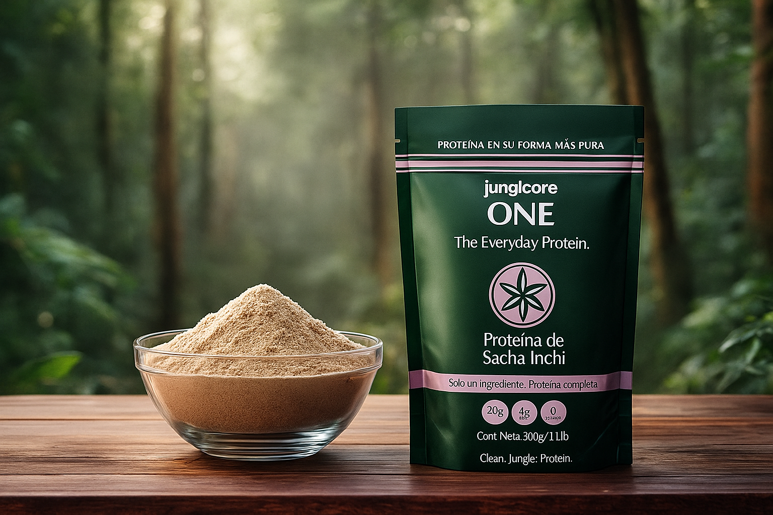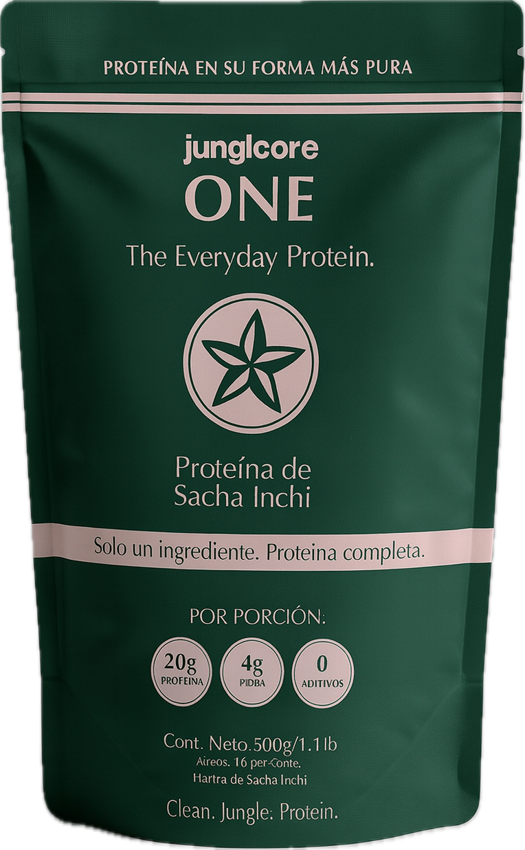 Junglcore ONE es una proteína de un solo ingrediente, hecha a partir de Sacha Inchi, una semilla amazónica cultivada en Colombia.