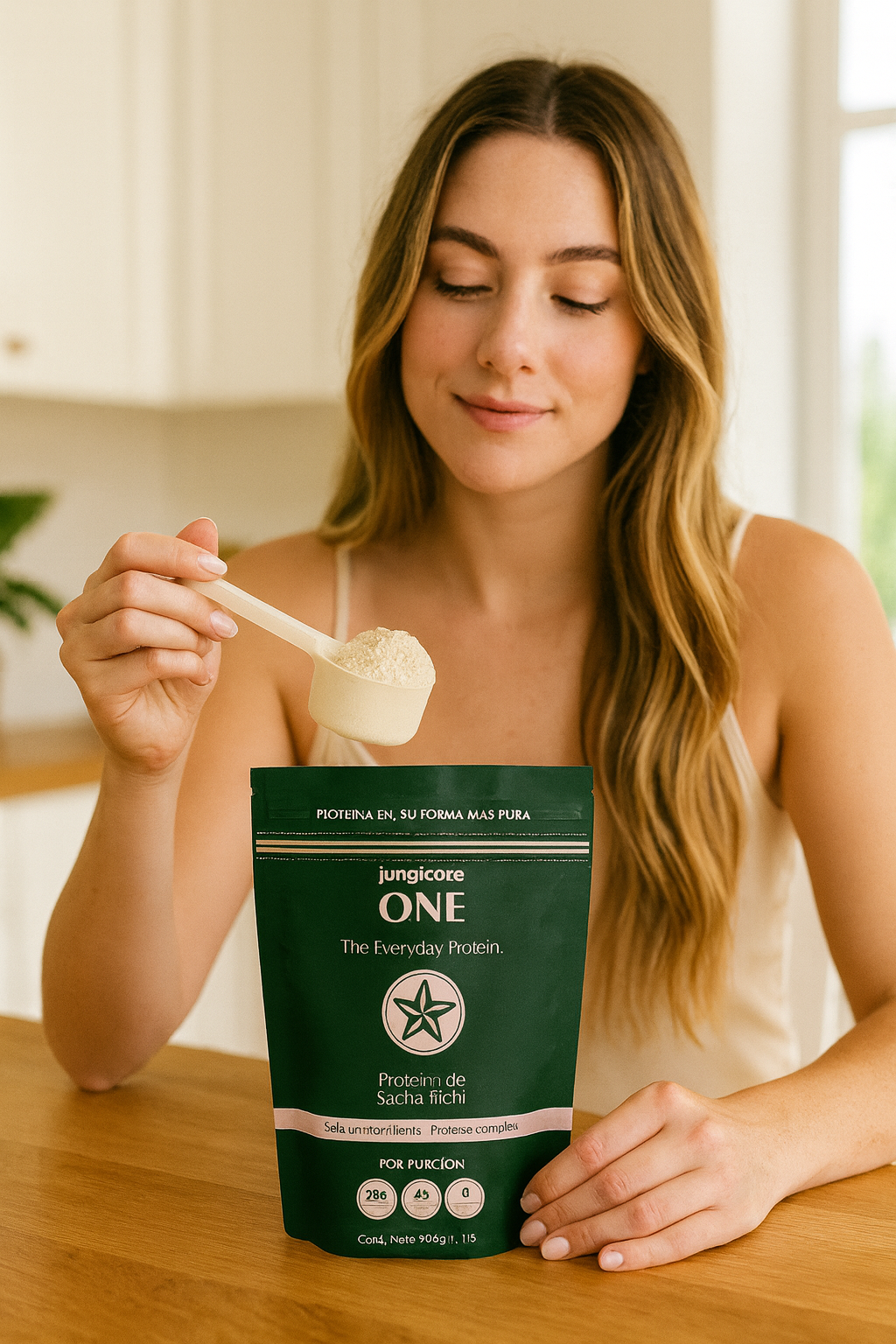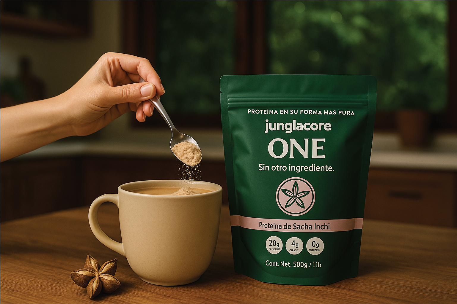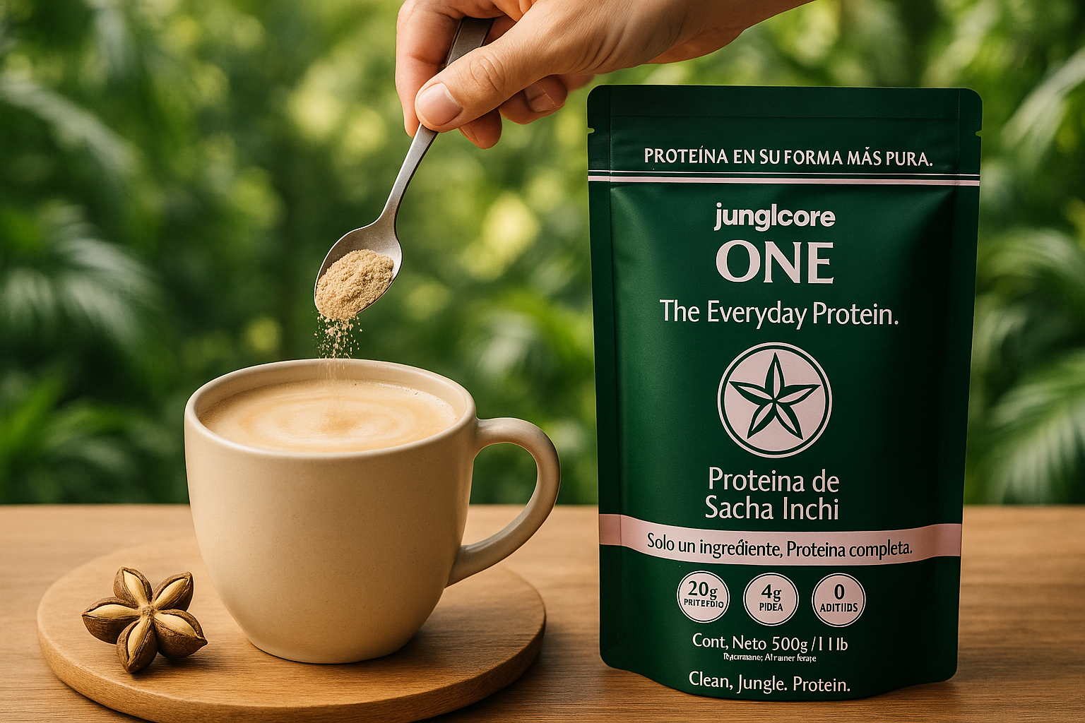 Junglcore ONE es una proteína de un solo ingrediente, hecha a partir de Sacha Inchi, una semilla amazónica cultivada en Colombia.